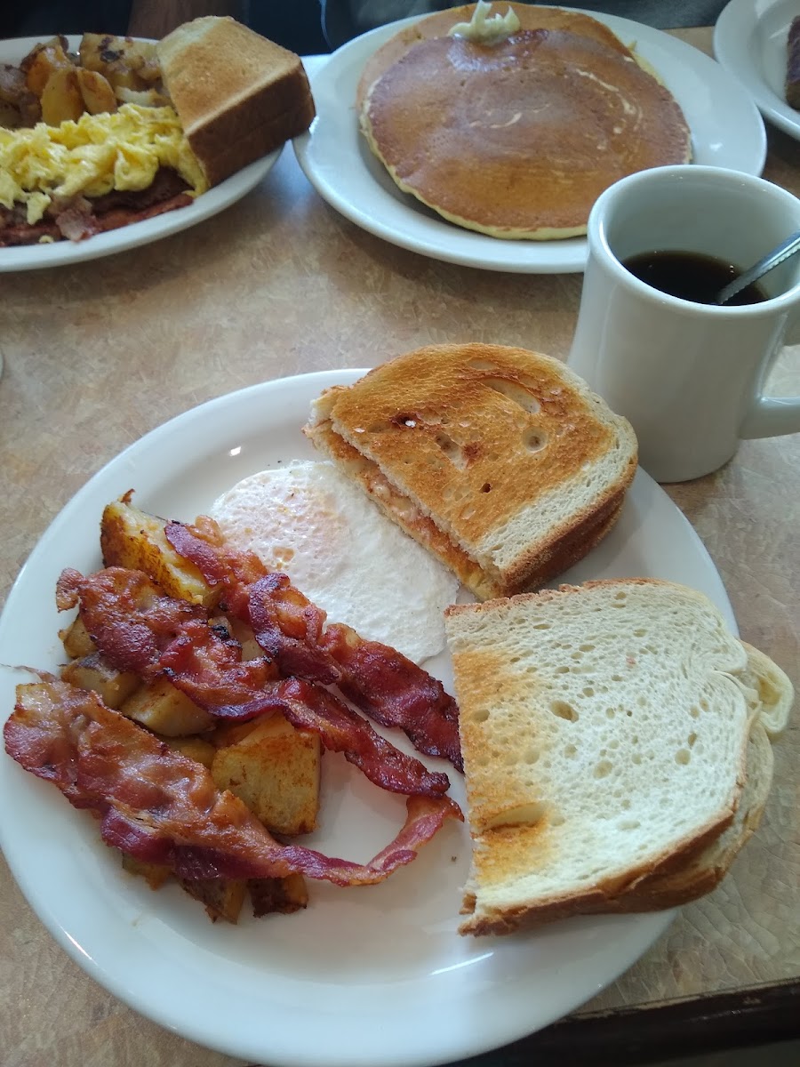 “ I stopped by and while it may not have been a stand out experience, it was just what I needed . Coffee seemed decent. I enjoyed my eggs, bacon, sausage, and French toast. Didn't even feel awkward dining by myself! ”