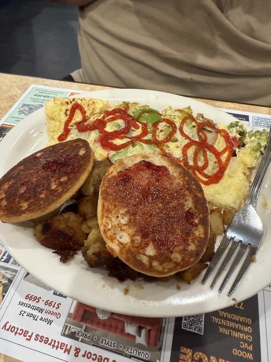 If you're in the mood for something more savory, their Home Fries, Waffle, Scrambled Eggs, and Toast with Beef Sausage is a must-try. The combination of perfectly seasoned home fries, scrambled eggs, and a generous portion of beef sausage is ideal for those looking for a hearty, satisfying breakfast to fuel their day.