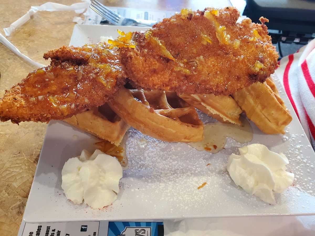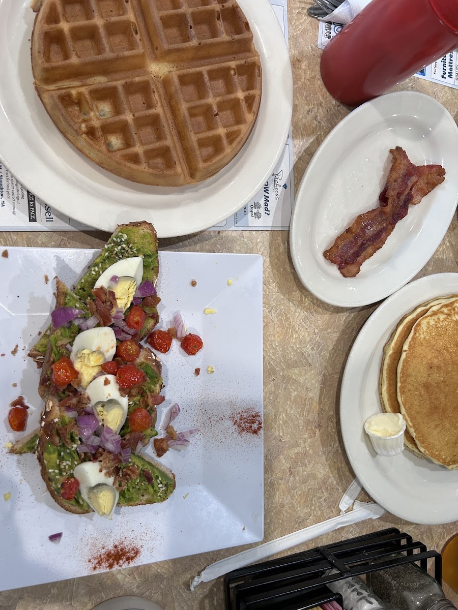 “ I got the waffles, bacon and avocado toast and it was so so good. The avocado was fresh and flavorful and the bacon crisp. The waitress was friendly and the inside was super clean and cute. Definitely recommend. ”